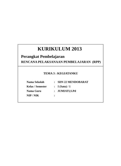 Rpp Kurikulum 2013 Sd Kelas 1 Tema 3 Kegiatanku - Rpp Sd Kelas 1 Semester 1 Tema 3 Kegiatanku Pdf : Perangkat pembelajaran sd / mi.